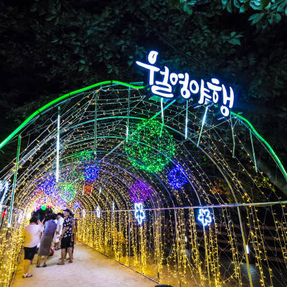 1. 야경(夜景): 은은한 달빛 아래, 눈부신 안동의 밤을 거닐다 월영교의 아름다운 야경은 이미 많은 이들에게 '인생샷' 명소로 알려져 있죠. '월영야행' 기간 동안 월영교는 더욱 특별한 빛으로 물듭니다. 전통 등간 전시로 월영교 전체가 한국적인 미를 뽐내는 조명으로 연출되며, 과거 선유줄불놀이를 현대적인 LED 퍼포먼스로 재해석한 선유야화는 환상적인 밤을 선사할 것입니다. 바람개비 거리, 무지개 우산길 등 감성 가득한 산책로를 걷고, 월영달빛 정원에서 은은한 달빛을 만끽하며 아름다운 야경 속에서 잊지 못할 추억을 만들어 보세요.